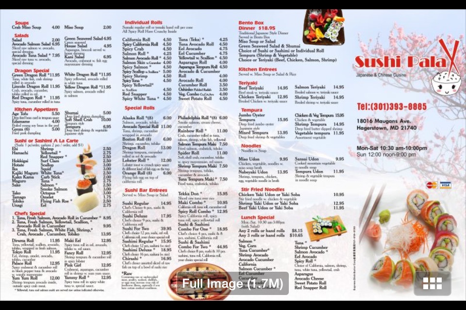 Welcome to Sushi Palax, a culinary haven nestled at 18016 Maugans Ave, Hagerstown, MD. This charming eatery offers a delightful fusion of Japanese and Chinese cuisine, making it a go-to spot for sushi lovers and takeout enthusiasts alike.